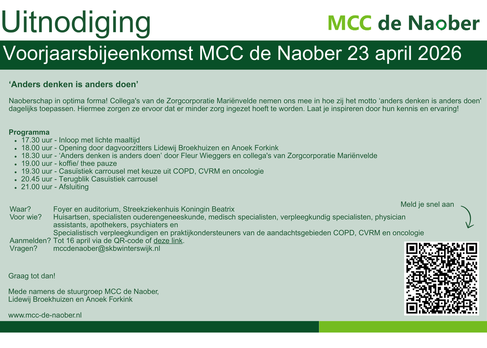 Welkom op de website van MCC de Naober! MCC de Naober app Naast deze website is er ook een app van MCC de Naober. Scan de QR code voor het downloaden van deze app. Contactgegevens mccdenaober@skbwinterswijk.nl